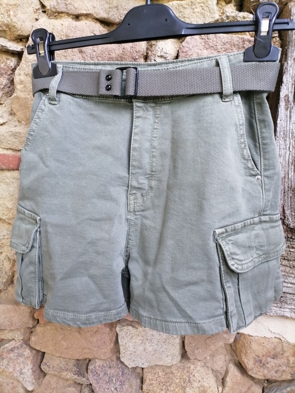 Le short des baroudeuses!! Toile épaisse, poches à soufflet et rabat scratch et sa ceinture ton sur ton. Taille haute. Trop beau!!